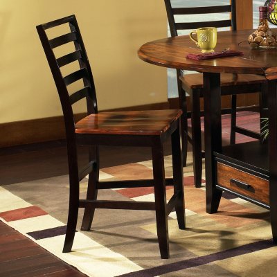 A counter height dining table with tall chairs in wood or upholstered bi-cast leather. One can also add the bi-cast leather side chair as well. *Occasional- The assortment of tables in this group also features the same beautiful turned posts and large feet ... View This Document